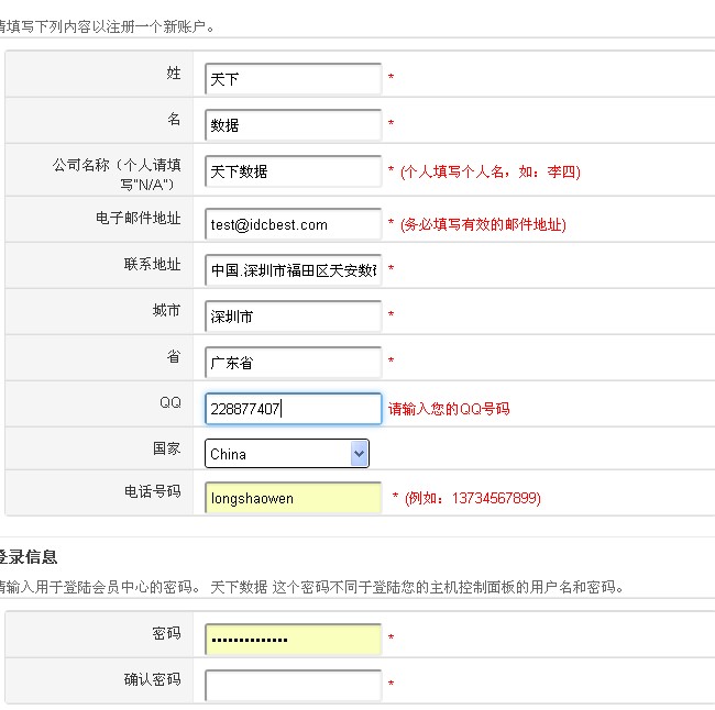 2、QQ和手机号码只能接受数字,请不要填写其他字符。